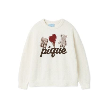 アイスやベアなど、gelato piqueらしいスウィートなモチーフに包み込まれる2026年のバレンタインコレクション。もっちりとした柔らかさが人気の’ベビモコ’に、ベアやチョコレート、ハートアイスのジャガードをPOPにあしらったプルオーバーです。キャッチーな絵柄にロゴを大きく添え、見るだけでHAPPYな気持ちになる1枚に仕上げました。色は柔らかなクリームとベリーのようなピンク、爽やかなブルーの3色をご用意。同シリーズのアラン柄アイテムと合わせたり、HOMMEサイズとペア・コーディネートもお楽しみいただけます。