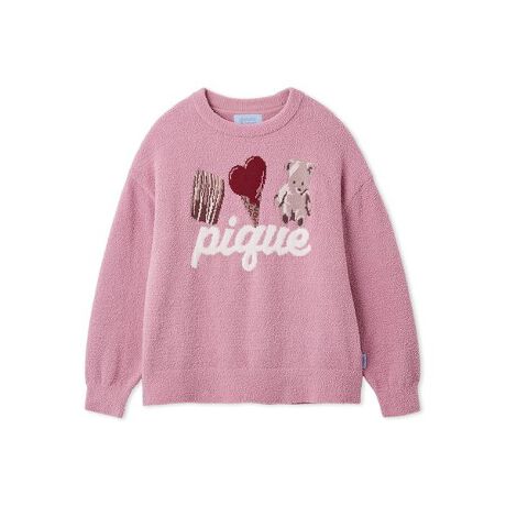 アイスやベアなど、gelato piqueらしいスウィートなモチーフに包み込まれる2026年のバレンタインコレクション。もっちりとした柔らかさが人気の’ベビモコ’に、ベアやチョコレート、ハートアイスのジャガードをPOPにあしらったプルオーバーです。キャッチーな絵柄にロゴを大きく添え、見るだけでHAPPYな気持ちになる1枚に仕上げました。色は柔らかなクリームとベリーのようなピンク、爽やかなブルーの3色をご用意。同シリーズのアラン柄アイテムと合わせたり、HOMMEサイズとペア・コーディネートもお楽しみいただけます。