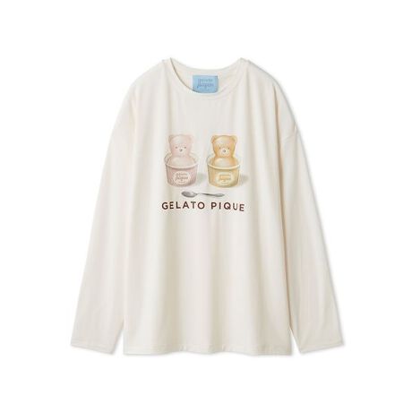 アイスやベアなど、gelato piqueらしいスウィートなモチーフに包み込まれる2026年のバレンタインコレクション。キュートなベア形のカップアイスがふたつ並んだ、遊び心ある絵柄をプリントした長袖プルオーバーです。レーヨン混のなめらかなカットソー素材で、カーディガン等のインナーとしても着やすいアイテム。色は優しい雰囲気のクリームとピンクをご用意しました。同シリーズの総柄ロングパンツやアラン柄アイテムと合わせたり、HOMMEサイズとペア・コーディネートもお楽しみいただけます。