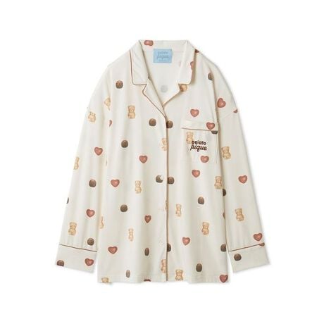 アイスやベアなど、gelato piqueらしいスウィートなモチーフに包み込まれる2026年のバレンタインコレクション。ベアやハートの形など、チョコレート味のアイスをプリントしたバレンタインならではの総柄シャツです。配色パイピング入りのデザインで、胸ポケットにはロゴ刺繍入り。レーヨン混のなめらかなカットソー素材なので、カーディガン等を羽織ったスタイリングもおすすめです。色は優しい雰囲気のクリームとピンクをご用意。同シリーズの総柄ロングパンツやアラン柄アイテムと合わせたり、HOMMEサイズとペア・コーディネートもお楽しみいただけます。