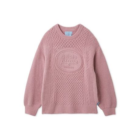 アイスやベアなど、gelato piqueらしいスウィートなモチーフに包み込まれる2026年のバレンタインコレクション。立体的な編み柄に温もりを感じる、‘エアリーモコ’素材のアラン柄プルオーバーです。フロントには、アイスサンドを挟むクッキーをイメージしたエンボス加工のロゴ入り。脇や袖は編み柄を変えて、表情豊かなニットに仕上げました。‘エアリーモコ’ならではの軽く包み込むような着心地をお楽しみください。色はピンクとブルーの2色展開。同シリーズのアラン柄のボトムやワンポイントプルオーバーを合わせたり、HOMMEサイズとのペア・コーディネートもおすすめです。