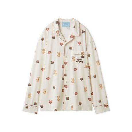 アイスやベアなど、gelato piqueらしいスウィートなモチーフに包み込まれる2026年のバレンタインコレクション。ベアやハート形のアイス、チョコレート味のアイスをプリントしたバレンタインならではのHOMMEサイズ総柄シャツです。配色パイピング入りのデザインで、胸ポケットにはロゴ刺繍入り。レーヨン混のなめらかなカットソー素材なので、カーディガン等を羽織ったスタイリングもおすすめです。色は優しい雰囲気のクリームとをご用意。同シリーズの総柄ロングパンツやアラン柄アイテムと合わせたり、LADIES’サイズとペア・コーディネートもお楽しみいただけます。