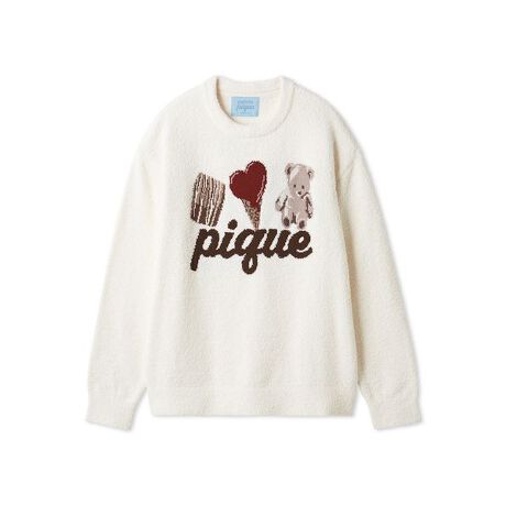 アイスやベアなど、gelato piqueらしいスウィートなモチーフに包み込まれる2026年のバレンタインコレクション。もっちりとした柔らかさが人気の‘ベビモコ’に、ベアやチョコレートハートアイスのジャガードをPOPにあしらったHOMMEサイズのプルオーバーです。キャッチーな絵柄にロゴを大きく添え、見るだけでHAPPYな気持ちになる1枚に仕上げました。同シリーズのアラン柄アイテムと合わせたり、LADIES’サイズとペア・コーディネートもお楽しみいただけます。
