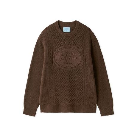 アイスやベアなど、gelato piqueらしいスウィートなモチーフに包み込まれる2026年のバレンタインコレクション。立体的な編み柄に温もりを感じる、‘エアリーモコ’素材を使用したHOMMEサイズのアラン柄プルオーバーです。フロントには、アイスサンドを挟むクッキーをイメージしたエンボス加工のロゴ入り。編み柄を変えた脇や袖、こっくりとしたチョコレートカラーもポイントです。‘エアリーモコ’ならではの軽く包み込むような着心地をお楽しみください。同シリーズのアラン柄のボトムを合わせたり、LADIES’サイズとのペア・コーディネートもおすすめです。