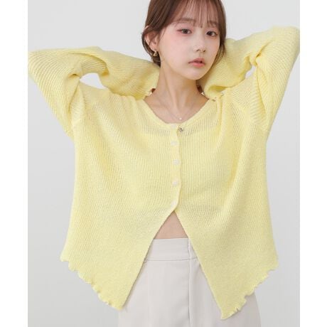 フレアスリーブとメロウ始末がフェミニンさを高めるカーディガン!スリットヘムが動きに軽やかさをプラスしつつ、ウエストラインを自然に引き立ててくれます。表情豊かな凹凸のある編み地がカジュアルになりすぎず、大人っぽさを演出。カラーは どんなコーデにも合うアイボリー、柔らかく上品なグレーブラック、春のムード漂うイエロー、そして新色のピンクの4色展開をご用意いたしました。コーデに華やかさを添えたい日や、さりげなく女性らしさをアピールしたい日にぴったりです。