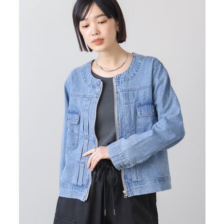 ノーカラーデザインですっきりとした印象に仕上げたデニムジャケットです。