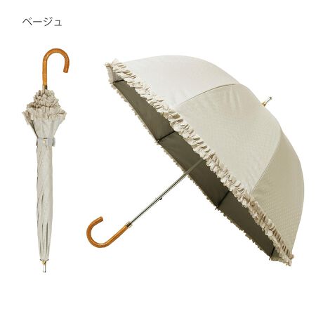 傘を閉じている時も花束のようなおしゃれアイテム、リボンとロゴパーツが付いたネームバンドも高見えポイント。