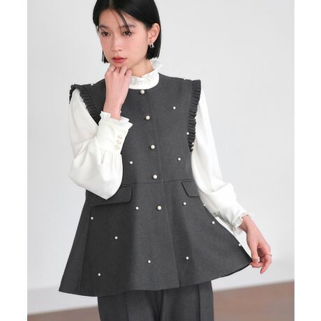 パールデザインが今っぽく、肩のフリルもポイントです。