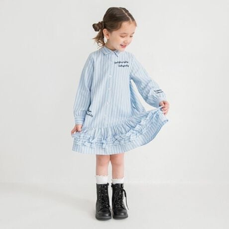 キッズ男児:11-6108-367 【おそろい】ストライプ柄ロゴ刺しゅう長袖シャツ