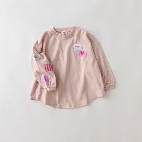 オリジナルワッペンネームがお袖と見頃にたくさん付いた長袖Tシャツはゆったりシルエットと裾のラウンドデザインがポイント!