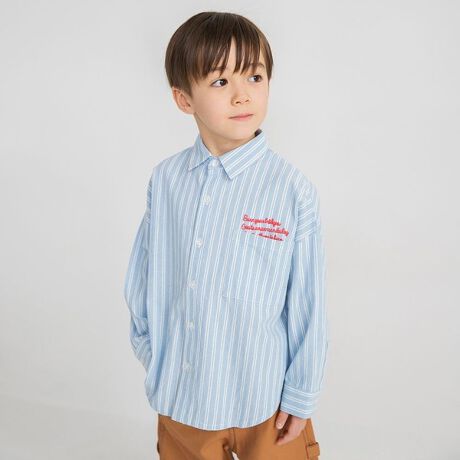 キッズ男児:11-6108-367 【おそろい】ストライプ柄ロゴ刺しゅう長袖シャツ