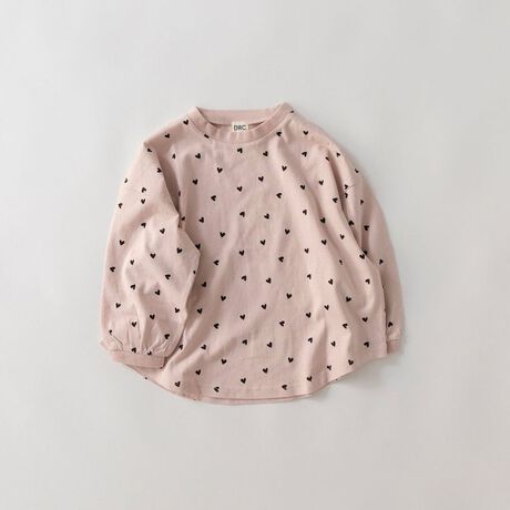 オリジナル総柄が可愛いゆったりとしたシルエットの長袖Tシャツは裾のラウンドデザインと背面のネームがポイント!
