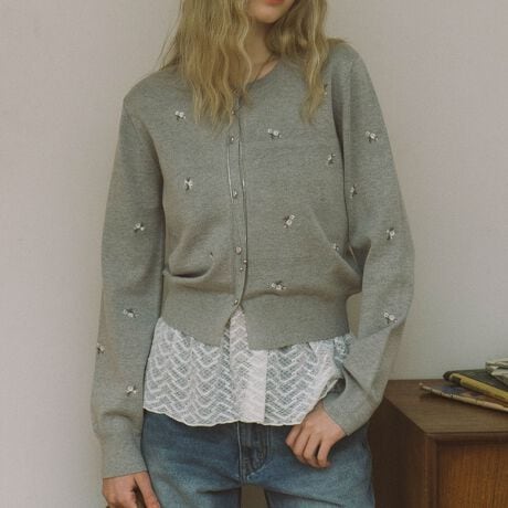 ■さりげなく華やぐ。小花刺繍ニットカーディガン■
