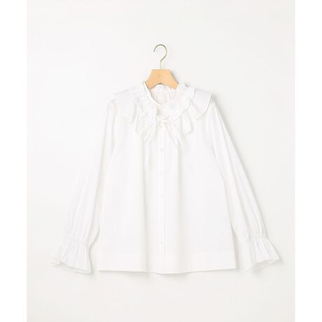 ■デザイン・フリルとギャザーをふんだんに使用した華やかな襟は釦で取り外し可能なので2WAYでスタイリングを楽しめます。・襟を取り外すとシンプルなスタンドカラーでオフィスでも対応可能です。・袖口はゴム使用のふんわりギャザー使い、レイヤードで着用の際にジャケットやニットの袖口からチラ見えする設計になっています。・1枚で着回しの効くブラウスは華やかな場面やオフィスでも大活躍するお勧めアイテムです。