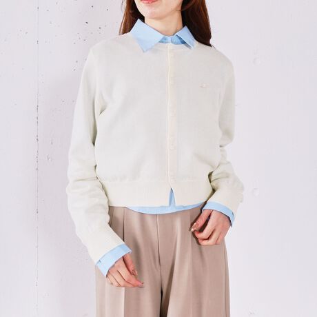 ・ショート丈シャツ×コンパクトカーデで、すっきりバランス良く着られる