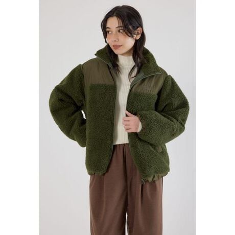 ■ポイントボアとナイロンの異素材ミックスデザインがキャッチーなジャケット。ボリュームのあるシルエットが存在感を放つアイテムです。ユニセックスでの着用が可能です。■ディテールバックにはロゴのデザインが入り、ウエスト部分にはドローコードが入るので、シルエットの変化も楽しめるのもポイントです。■スタイリングデニムやワイドパンツに合わせて、抜け感のある大人カジュアルスタイルに◎。■生地ボアと粒中綿を使用しており軽量で程よいボリューム感があります。表地のボアは毛が抜ける可能性がありますので、洗濯など取り扱いにはご注意ください。プリント箇所は着用・洗濯によリ剥離する場合があります。中綿は粒中綿を使用しています。洗濯後若干の偏りが発生する事がありますので手で整えて下さい。■透け感:なし■裏 地:あり■伸縮性:なし■光沢感:なし[注意事項]※画像の商品はサンプルです。実際の商品と仕様、加工が若干異なる場合があります。※画像の商品は光の照射や角度、お使いのモニター環境により、実物と色味が異なる場合がございます。※着用、お取り扱いの際は、アテンションタグをご確認ください。