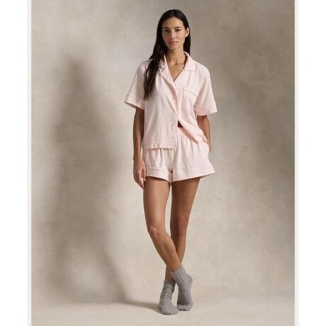 半袖シャツと伸縮性のあるショートパンツを組み合わせたパジャマセット。クラシックなパイピングを施し、アイコニックなポニー刺繍をあしらったデザイン。通気性と柔らかい手触りを実現するために厳選された、ストレッチコットン混紡素材を使用。時間とともに魅力が増す、一年を通して活躍する快適なアイテム。・シャツ:ノッチドカラー / ボタン付き前立て / 半袖 / 左胸にパッチポケット / ポケットにシグネチャーのポニー刺繍・ショートパンツ:伸縮性のあるウエスト / サイド オンシーム ポケット・オーガニックコットンを使用した商品 / オーガニックコットンの栽培は、清潔な水と豊かな土壌を保護するものです。・モデル身長178cm / 1人はサイズSを着用、1人はサイズMを着用。 【素材】・上 身頃部分:綿 66%、再生繊維(リヨセル)29%、ポリウレタン 5% 装飾部分を除く パンツ 身頃部分:綿 66% 再生繊維(リヨセル)29%、ポリウレタン 5% 装飾部分を除く【生産国】中国