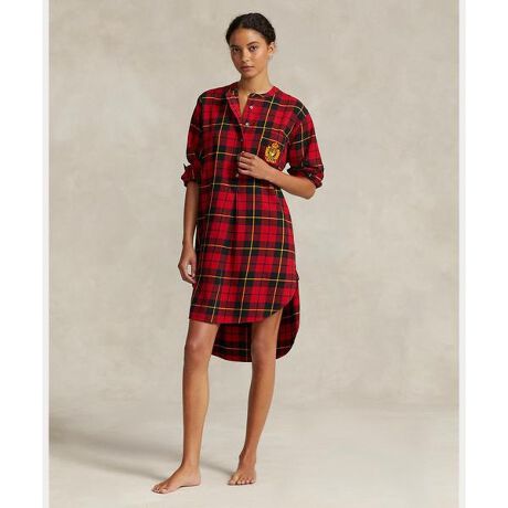 通気性のよいコットンフランネルを使用したスリープシャツ。クラシックなノッチドラペル、チェックモチーフの総柄、胸ポケットにあしらったシグネチャーのポニー刺繍が特徴的なアイテム。・リラックスフィット / 膝上丈・スタンドカラー / ボタン付きハーフプラケット・長袖、ボタン付きバレルカフス / 左胸にパッチポケット・ボックスプリーツのバックヨーク / ラウンド型にカーブした裾 / 左胸ポケットにシグネチャーのポニー刺繍。・ファブリックのセルフタイのラップデザインがエレガントな装いを実現するスリープシャツ・モデル身長178cm、着用サイズS※商品の色味は、光のあたり具合など諸条件により色感が多少異なって見える場合がございますので予めご了承下さい。※注意:柄の配置は、商品によって異なります。 【素材】・綿 100% 装飾部分を除く【生産国】インド
