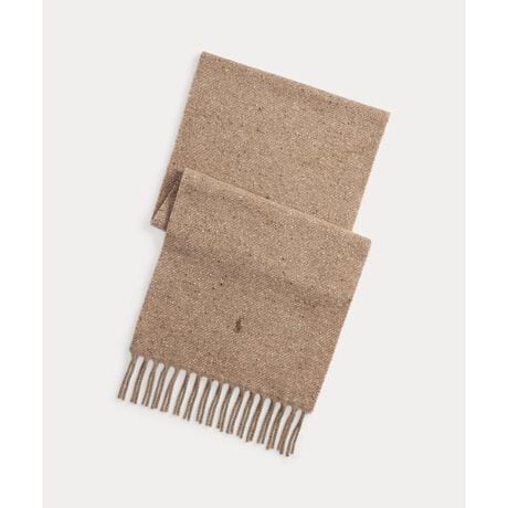 イタリアで織り上げたウール混紡マフラー。濃淡の異なるドニゴール糸にインスパイアされた、小さな斑点を散りばめたような表情に仕立てたアイテム。・布端にフリンジ・片端にシグネチャーのポニー刺繍※商品の色味は、光のあたり具合など諸条件により色感が多少異なって見える場合がございますので予めご了承下さい。 【素材】・毛 90%、ナイロン 10% 装飾部分を除く【生産国】イタリア