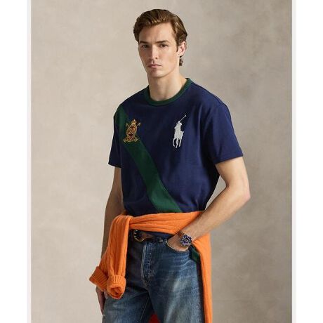 Ralph LaurenのアイコニックなBig Ponyの20周年を祝う、エクエステリアン風のクレストが特徴的なコットンジャージーのTシャツ・クラシックフィット:胸、ウエスト、袖にかけてゆったりとしたカット、肘上までかかる低いアームホール・コントラストの効いたクルーネック・半袖 / 右袖に3のツイルパッチ・右胸にシグネチャーの20のクレストとSince 2005のバナーの刺繍・左胸にシグネチャーのBig Pony刺繍。・モデル身長185cm、着用サイズM※商品の色味は、光のあたり具合など諸条件により色感が多少異なって見える場合がございますので予めご了承下さい。 【素材】・本体:綿 100% 装飾部分を除く【生産国】ベトナム