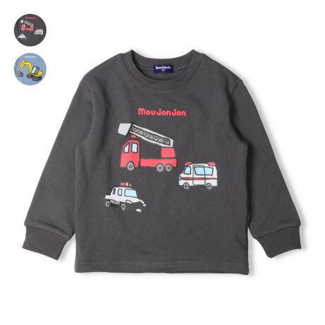 ネットショップと専門店、セレクトショップなど限定のアイテム!直営店では直営オンラインショップ「こどもの森e-shop」各店のみでの販売になります。【直営実店舗での販売はありません。】ブラックにはパトカー、消防車、救急車、ブルーにはショベルカーのプリント入り。手描き風のプリントがゆるくて可愛い!秋から春まで着られる裏毛素材のトレーナー、スウェット。【アイテム】トップス カジュアル お洒落 オシャレ かっこいい かわいい 可愛い 普段着 デイリーウェア お出かけ着 お外着 お外遊び着 子ども服 こども服 男児 男の子 ボーイズ キッズ ベビーサイズ トドラーサイズ 幼稚園 保育園 小学校 通園 通学 小学生 2025年秋冬物新作 丸高衣料 ロングスリーブ 長袖 ブラック 黒色 ブルー 青色 ムージョンジョン