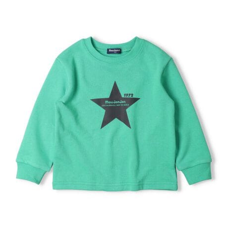ネットショップと専門店、セレクトショップなど限定のアイテム!直営店では直営オンラインショップ「こどもの森e-shop」各店のみでの販売になります。【直営実店舗での販売はありません。】目を引く星のプリントにはmoujonjonのロゴ入り。男の子も女の子も着られるユニセックスなデザイン。秋から春まで着られる裏毛素材のトレーナー、スウェット。【アイテム】トップス カジュアル お洒落 オシャレ かっこいい かわいい 可愛い 普段着 デイリーウェア お出かけ着 お外着 お外遊び着 子ども服 こども服 男児 男の子 ボーイズ キッズ ベビーサイズ トドラーサイズ 幼稚園 保育園 小学校 通園 通学 小学生 2025年秋冬物新作 丸高衣料 ロングスリーブ 長袖 ブラック 黒色 エメラルドグリーン 薄緑色 ムージョンジョン 女児 女の子 ガールズ 男女兼用