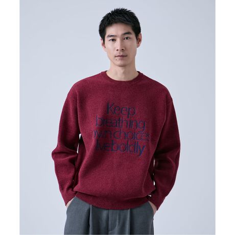 モール糸特有のふっくらとした素材感に、遊び心のあるロゴデザインを落とし込んだクルーネックニットです。