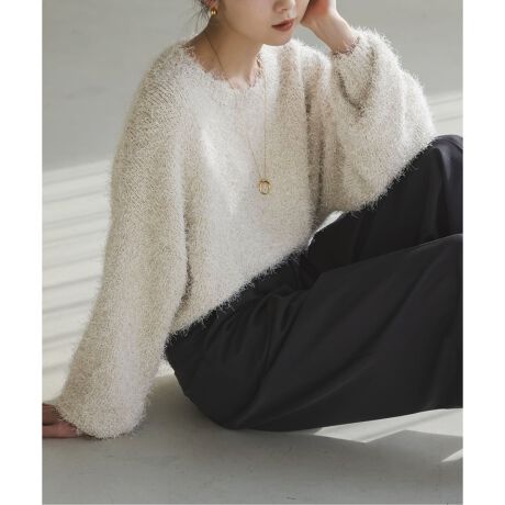 開き具合のちょうどいいクルーネックとゆったりとした身頃と袖、やや前後差のある丈で着用するだけでこなれ感の生まれる絶妙なバランス感が可愛いニットプルオーバーです。