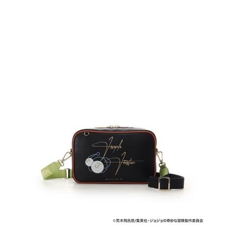 ◇SAMANTHAVEGA(サマンサベガ)のアニメ『ジョジョの奇妙な冒険 戦闘潮流』「ジョセフ・ジョースター」コラボコレクション ショルダーバッグサマンサベガから、アニメ『ジョジョの奇妙な冒険 ファントムブラッド』コラボコレクションとアニメ『ジョジョの奇妙な冒険 戦闘潮流』コラボコレクションが初登場!物語に登場する「ジョナサン・ジョースター」、「ディオ・ブランドー」、「ジョセフ・ジョースター」、「シーザー・A・ツェペリ」、「カーズ」の5キャラクターそれぞれをイメージしたバッグ、折財布、バッグチャームと、物語のキーアイテムでもある「石仮面」、「エイジャの赤石」をモチーフにしたバッグチャームの全17アイテムがラインナップ。▽デザイン・表には「ジョセフ・ジョースター」のサインと、技であるクラッカーヴォレイで使用するアメリカンクラッカーをデザイン。・背面には、“JOJO”のロゴと物語のキーアイテムである「エイジャの赤石」のシルエットの総柄をプリントしました。・背面デザインされた、物語に出てくる瓶の蓋をイメージしたオリジナルの金具がポイントです。・ショルダー部分は、「ジョセフ・ジョースター」マフラーの柄をイメージしたデザインです。▽機能性・表と裏のデザインが違うのでスタイリングに合わせて使用できます。・天ファスナー付きで仕切りのない内装で使いやすさ抜群です。・薄マチ前ポケット付きで、スマートフォンや小物など収納いただけます。【対応しているもの】・長財布・ペットボトル500ml/横