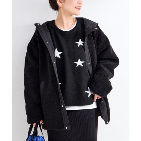 フーディ付きのスポーティーな雰囲気がありつつ、シーズンムード高まるボア素材が女性らしさを引き立ててくれます。ヒップが隠れる長めの丈感で落ち着いた印象を与え、見え方が異なるボアと無地(ポリエステル)でスタイリングや気温感によって着こなしを変えられます。