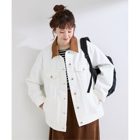配色のコーデュロイで切り替えた襟がポイントのデニムジャケット。