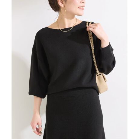 落ち感のある柔らかな質感のボートネックプルオーバー。