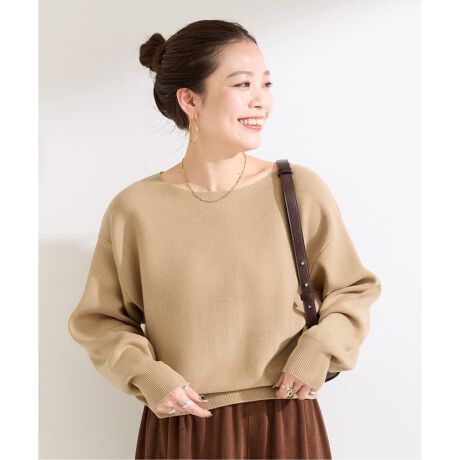 落ち感のある柔らかな質感のボートネックプルオーバー。