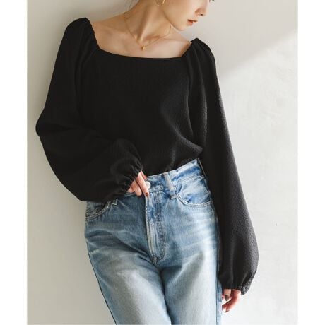 デコルテ開きとふんわりとしたお袖が着映えを叶えるフェミニンなブラウス。
