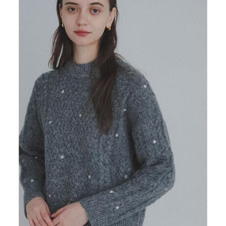 ふんわりとした起毛感のある素材で仕立てた季節感たっぷりのケーブルミットプルオーバー