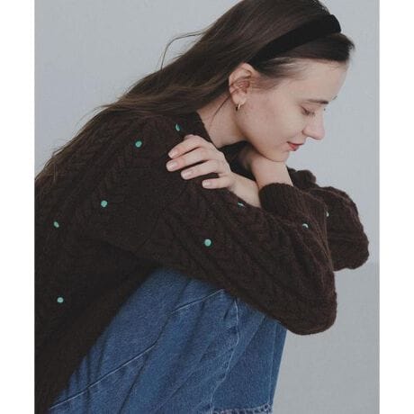 立体感のあるケーブル編みに、丁寧に施された刺繍デザインが華やかさを添えます。