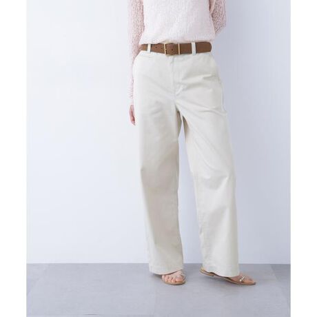 程よいハリと柔らかさを備えた生地で、デイリーにはける快適な着心地のベーシックチノパンツ。ウエストには配色のマーブルボタンを使い、シンプルな中にさりげないアクセントをプラス。ベーシックなストレートシルエットで、どんなトップスとも相性バツグン。トレンドのチノパンツは、ワードローブに1本あると幅広いスタイリングに着回せます。<素材>通年使えるカジュアルなチノ素材を使用しています。<詳細>仕様・前ファスナー裏地・なし透け感・なし / 光沢・なし / 伸縮性・なし 生地の厚さ・普通※モデルの着用画像の場合、光の当たり具合により、実際の色味と異なって見えることがございます。色味は、商品単体の画像をご参照ください。