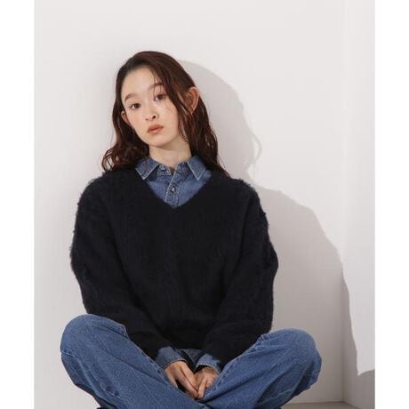 柔らかな起毛素材が心地よいVネックニット。ふんわりとした風合いで、肌寒い季節にぴったりの一枚です。程よく開いたVネックが首元をすっきりと見せ、女性らしい抜け感をプラス。デニムやスカート合わせはもちろん、ワンピースの上に重ねても着こなせます。<素材>ふんわりと起毛した片畦編みです。<詳細>仕様・開閉なし裏地・なし透け感・なし / 光沢・なし / 伸縮性・あり生地の厚さ・厚手※モデルの着用画像の場合、光の当たり具合により、実際の色味と異なって見えることがございます。色味は、商品単体の画像をご参照ください。