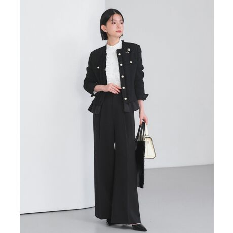 パール付きできちんと見えが叶うジャケットとワイドパンツ。