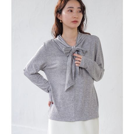 首元のタイデザインがさりげないアクセントとなり、シンプルながらも品のある印象に仕上げたトップスです。落ち感のある素材が体のラインをきれいに見せ、大人の女性にちょうど良い抜け感を演出します。1枚で着映えしつつ、派手になりすぎないデザインが日常使いに最適です!