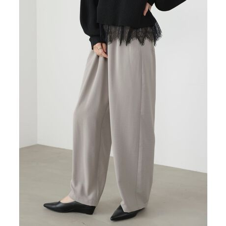 ウエストのサイズを調整できるドロストウエストパンツ。