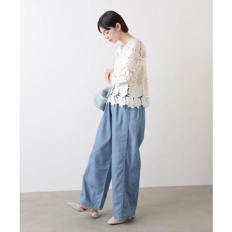 ハイウエストデザインでスタイルアップが叶う、着心地柔らかなワイドデニム。