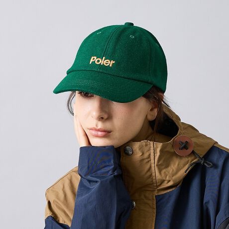 Wool EMB Baseball Cap は、落ち着いた風合いのウール混ボディを使った6パネルベースボールキャップ。