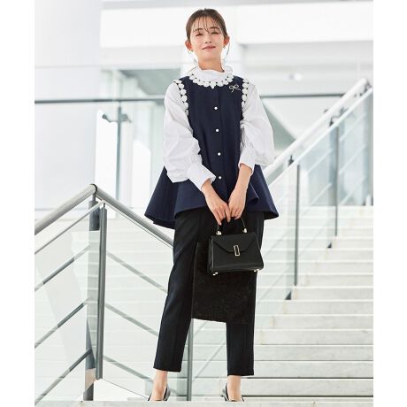 フラワーテープのディテールと調和する白ブラウスとのスタイリングがおすすめ♪