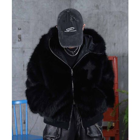 ILL'S【MAROCORE / マロコア】クロスモチーフ ストレートファー フーディーブルゾン
