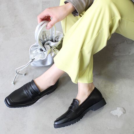 ボリュームがあるタンクソールを合わせたローファーシューズ。