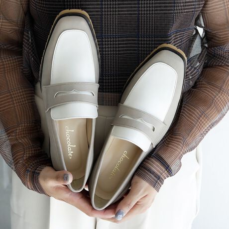 ボリュームがあるタンクソールを合わせたローファーシューズ。