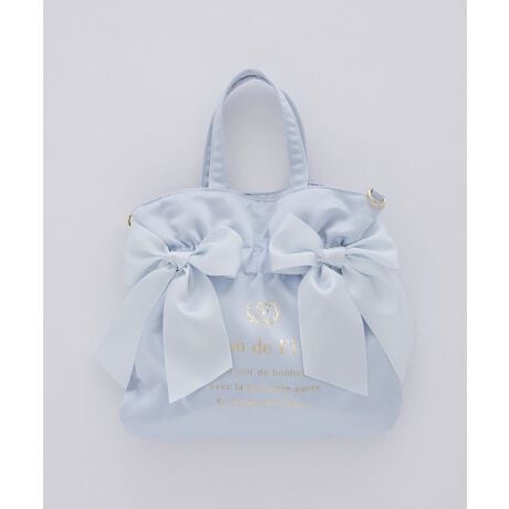 上品なサテン生地にブランドロゴの箔プリントとダブルリボンでフェミニンに仕上げたトートバッグ。