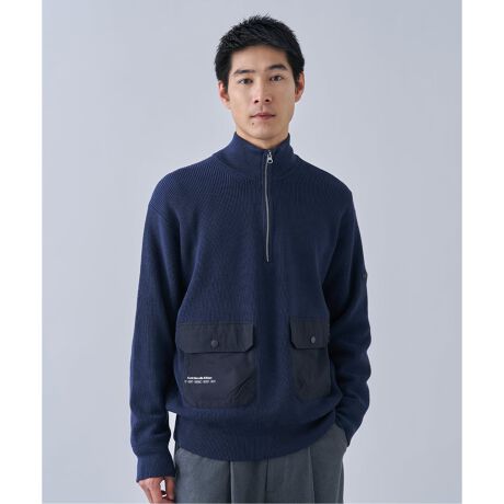 異素材を組み合わせることで、単色のニットにはない無骨さとテック感のあるデザインに仕上げています。
