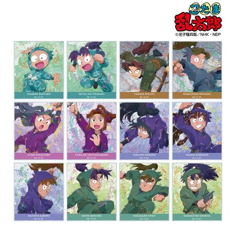 猪名寺乱太郎、摂津のきり丸、山田利吉、小松田秀作、綾部喜八郎、平滝夜叉丸、久々知兵助、尾浜勘右衛門、鉢屋三郎、潮江文次郎、中在家次、七松小平太のイラストを新たなタッチで魅力的に表現し、アクリルカードに仕上げました。